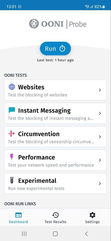 Through the new “Run” button of the OONI Probe Android app, you can enable and disable OONI Probe tests and the installed OONI Run links.